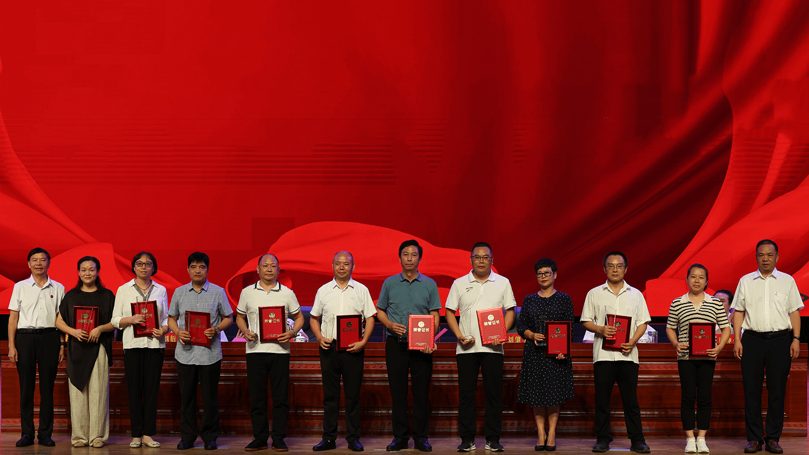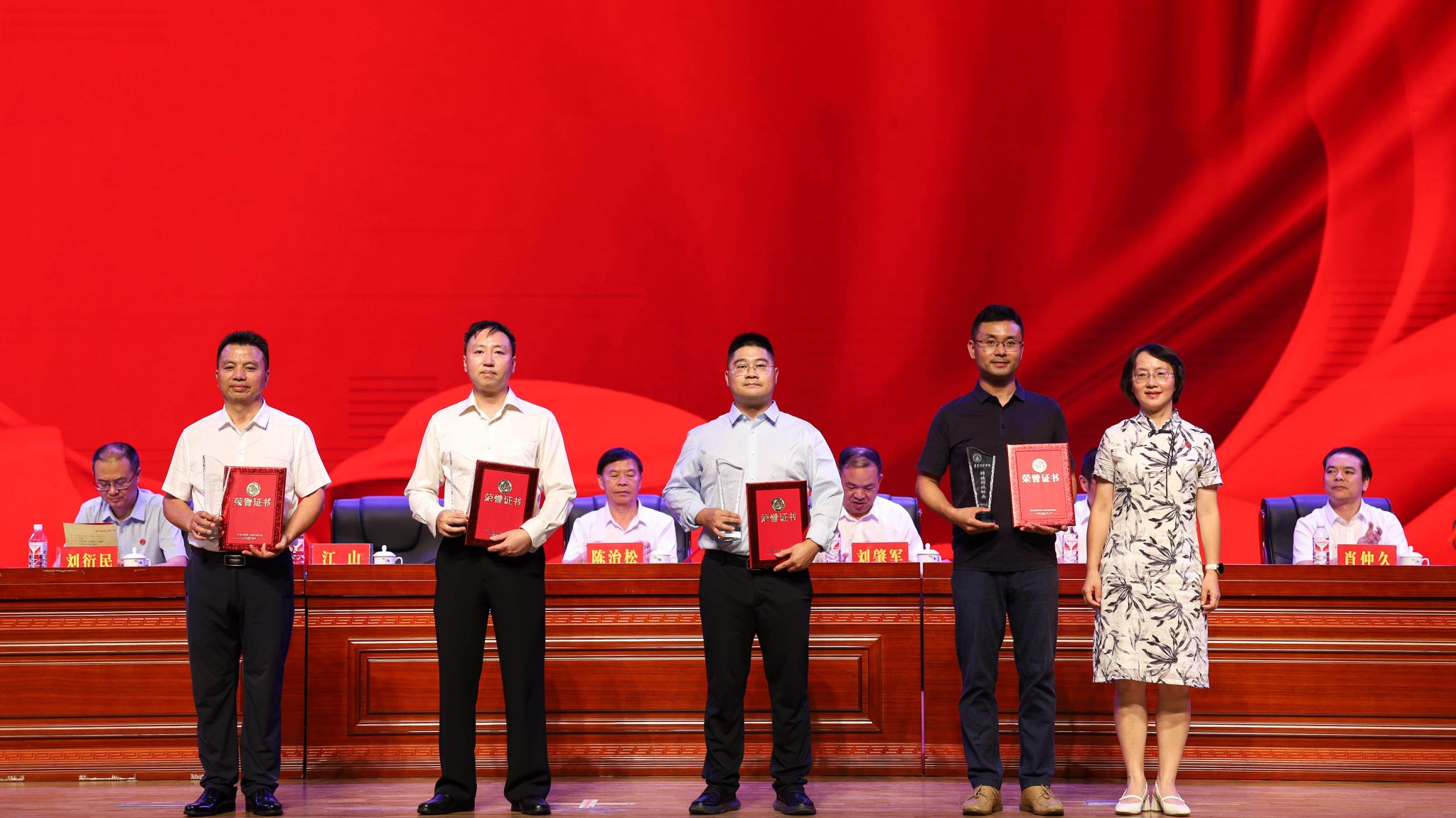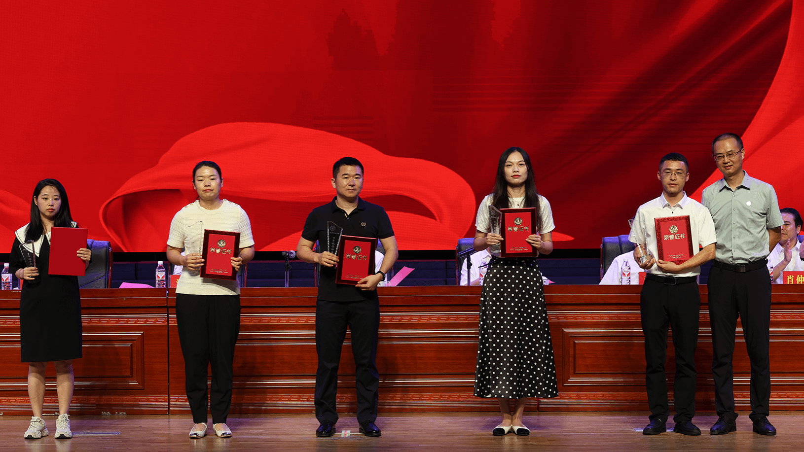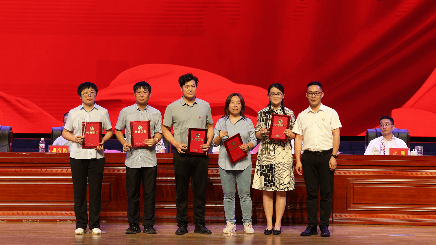 大会宣读荣誉退休教师名单,主席台就座领导为2024年荣誉退休教师颁奖。
