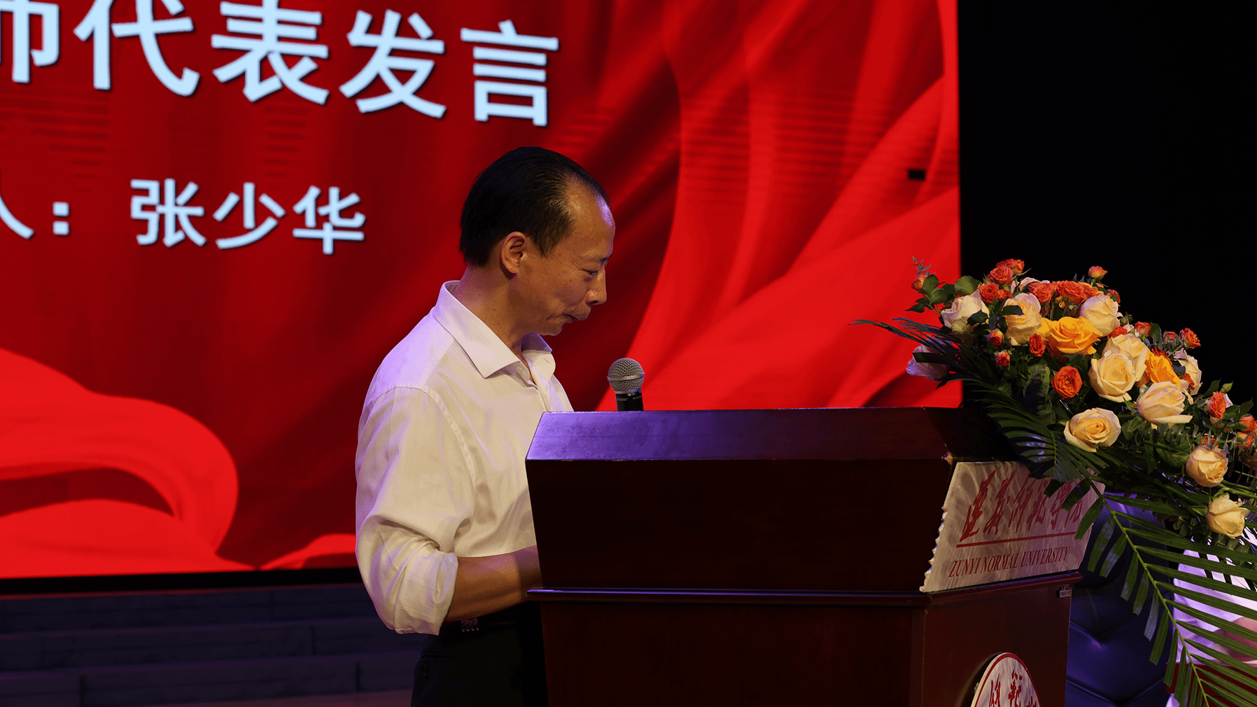 陈治松作了讲话,代表学校党委和行政,向全校广大教师和教育工作者致以节日的祝福和良好的祝愿!向受到表彰的个人和集体表示热烈的祝贺!向为学校改革发展作出贡献的离退休老同志表示衷心的感谢!向刚入职的新教师表示热烈欢迎!