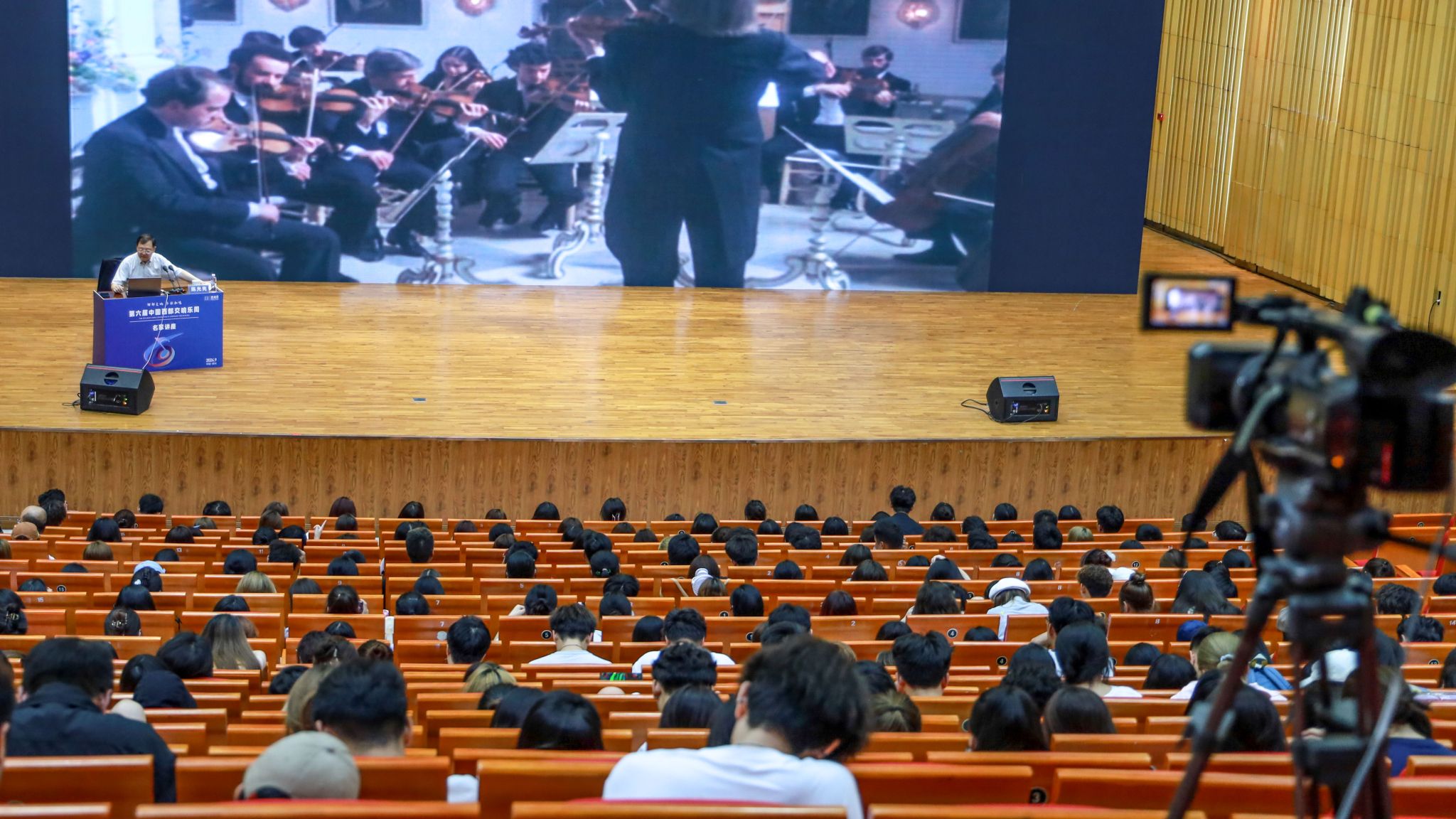 陈光宪分享了带团出国演出经验,并表示,通过高校平台推广交响乐,既能加深学生对音乐的理解和欣赏,也有助于提升整个社会对交响乐的兴趣和认识,为交响乐事业发展谱写新的篇章。
