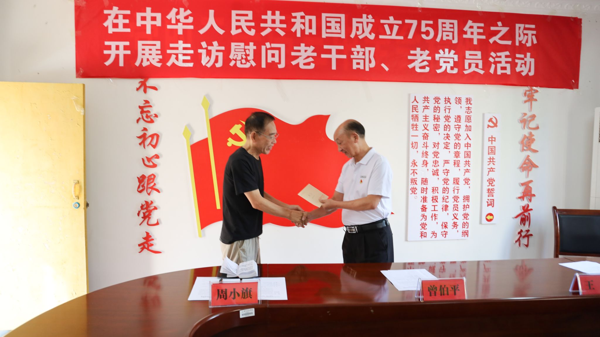 本网讯(文/图 党委宣传部 刘家兵)广大老干部、老党员是党和国家的宝贵财富,是党执政兴国的重要资源,是推进中国特色社会主义伟大事业的重要力量。在中华人民共和国成立75周年之际,9月24日上午,学校党委副书记曾伯平带队慰问周帆、娄义志等老干部、老党员。