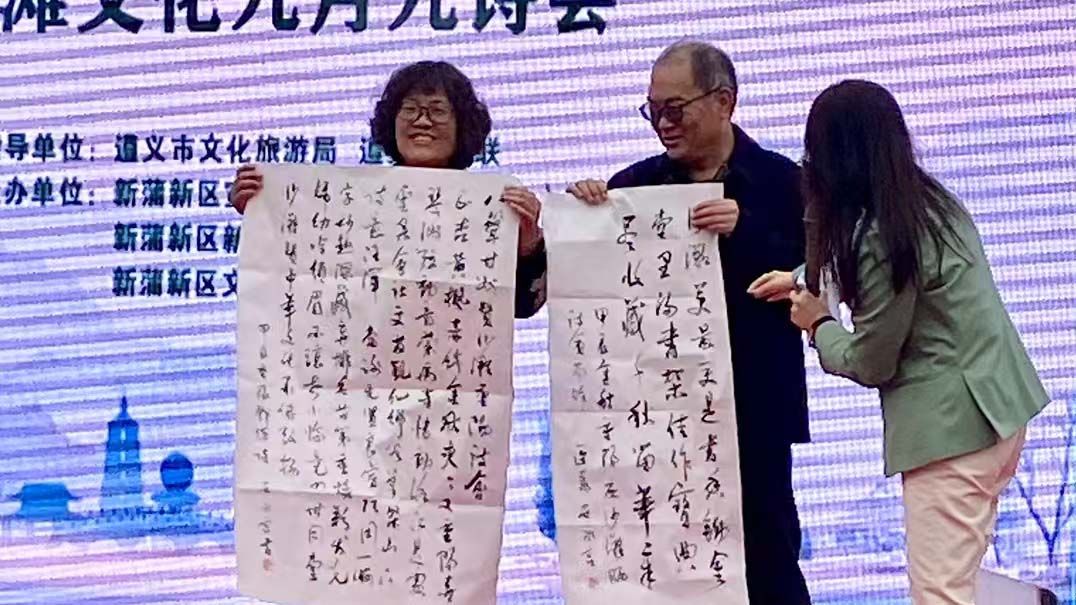 本网讯(文/施宣 图/罗小玥、韦照燕) “漫浪江湖已十霜,一秋强半又重阳。”10月11日,正申报贵州省非遗项目的“沙滩文化九月九晒诗会”在遵义沙滩举行。beat365亚洲版官网诗词楹联学会积极组织师生校友参与其中,在现场的诵诗、写诗、晒诗、评诗中,让已有200多年历史的沙滩晒诗会传统继续散发活力。