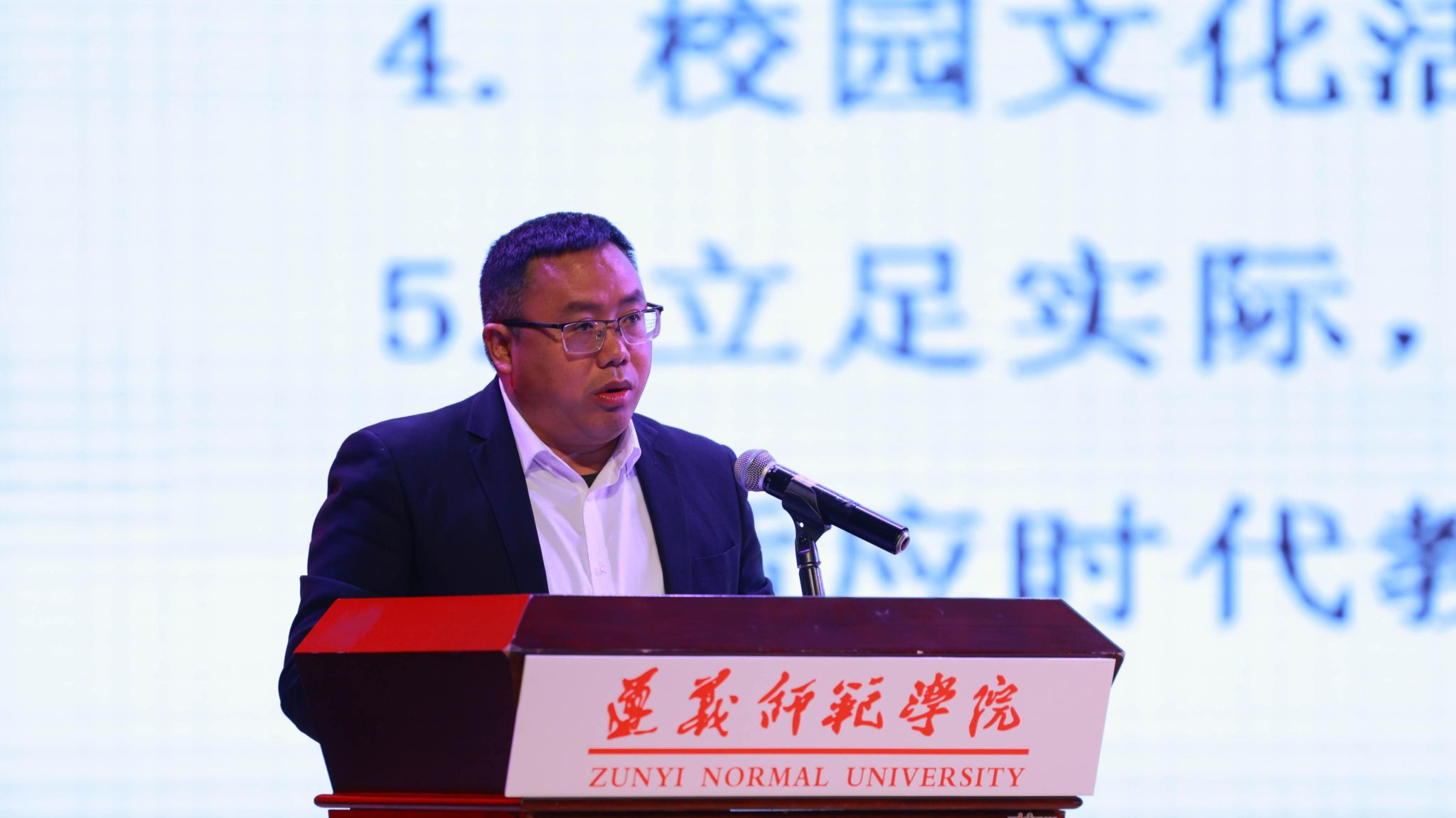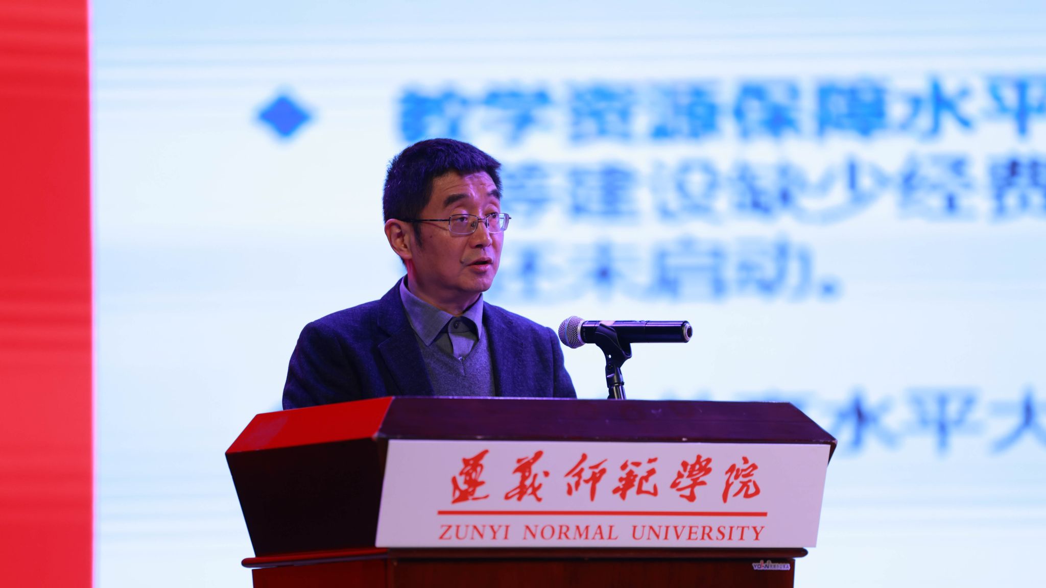 张鹏作题为《守正创新谋发展 踔厉奋发谱新篇 以教育之强支撑遵师新时代建设》的教育教学工作分报告。