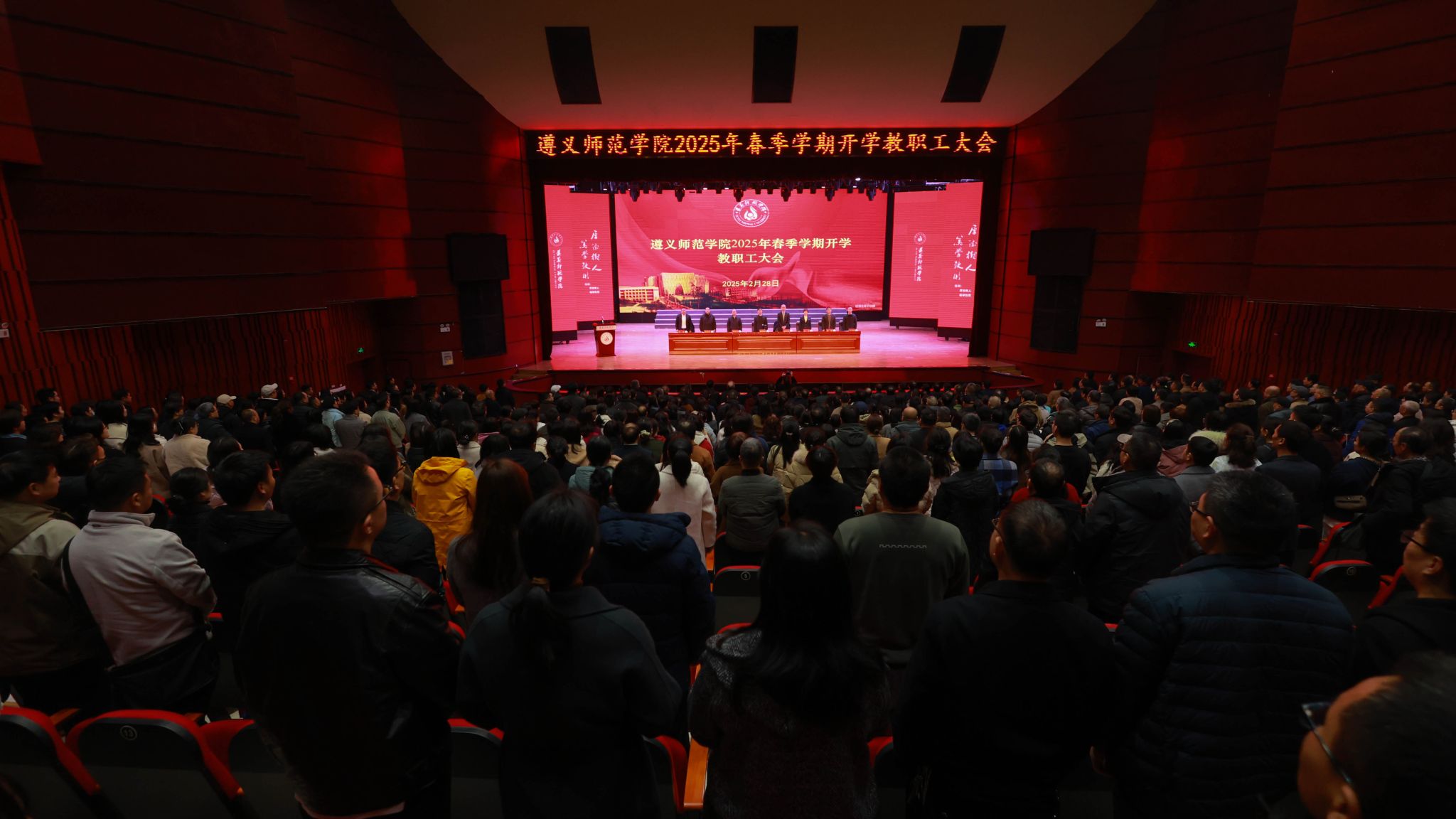 本网讯(文/伍景 图/朱芷萱、周选州) 2月28日,beat365亚洲版官网2025年春季学期开学教职工大会暨教育教学工作会议、学生工作会议在大礼堂召开。
