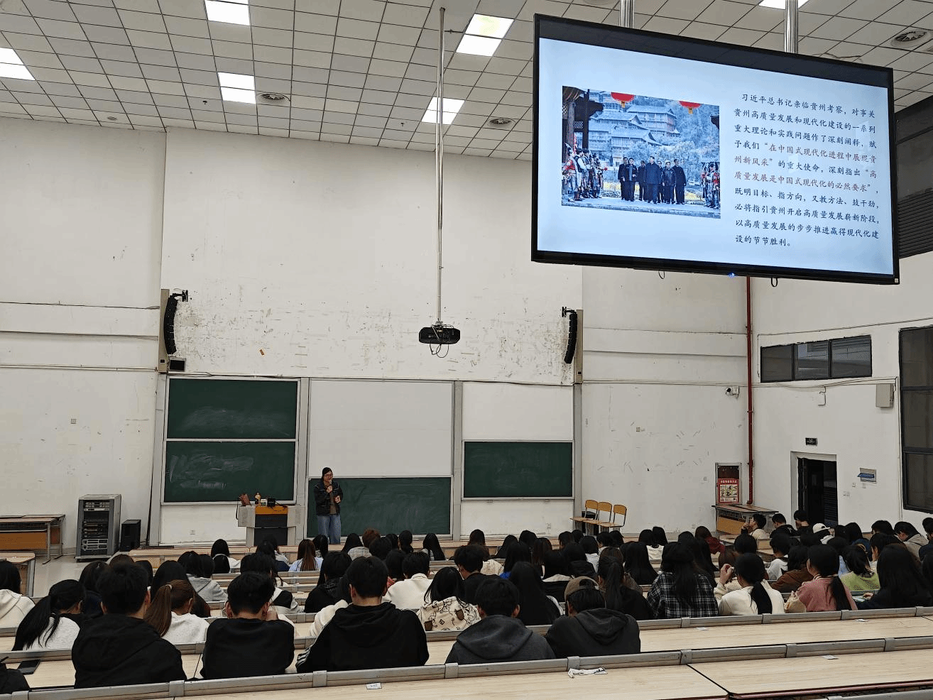 为深入学习贯彻习近平总书记在贵州考察时的重要讲话精神,4月27日19:00,管理学院在执闳楼104报告厅组织开展了深入学习贯彻习近平总书记在贵州考察时的重要讲话精神专题宣讲,宣讲团成员张坤美老师主讲,学院2023、2024级全体学生参加。