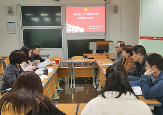 图书馆教工第二党支部召开2022年组织生活会暨民主评议党员大会 2023-03-31 09:40访问: 根据学校《关于认真组织召开2022年度基层党组织组织生活会和开展民主评议党员的通知》的精神,图书馆党总支二支部于2023年3月29日组织党员召开了组织生活会暨民主评议党员大会,全体党员参加会议,党总支书记罗良金以普通党员身份参加,支部书记唐晔主持会议。会上,唐晔代表第二支部向全体党员报告了2022年党支部工作情况,通报了党支部委员会查摆问题。强调了召开组织生活会的重要性,要求党员按照组织生活会的通知要求,围绕...