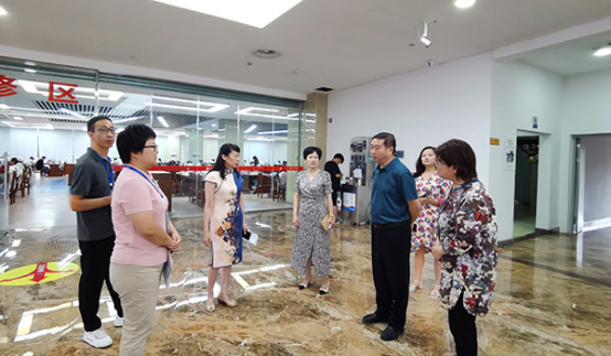 2023年8月21日上午,党委委员、组织部、统战部部长王明述带队到图书馆检查新学期开学准备工作。