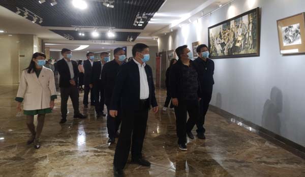 赵廷昌一行察看了图书馆一楼的党员先锋岗、红色文献、地方文献展台、VR红色资源虚拟与现实体验区、书画长廊及二楼中庭大型屏风、画展、诗教陈列室等。