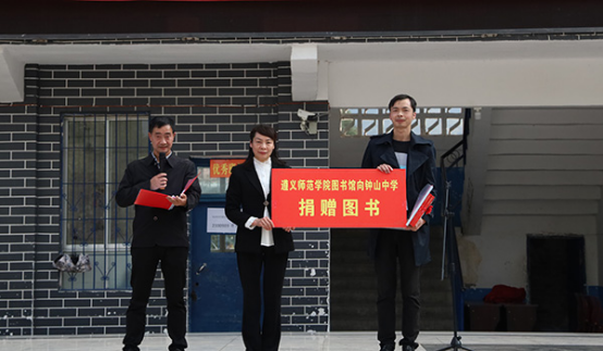 3月14日,图书馆党总支书记罗良金、馆长蓝卡佳带领流通部、参考咨询部相关人员来到余庆县龙家镇钟山中学,开展了“情系乡村· 书香育人”图书捐赠活动,向钟山中学捐赠近300种,600多册图书。