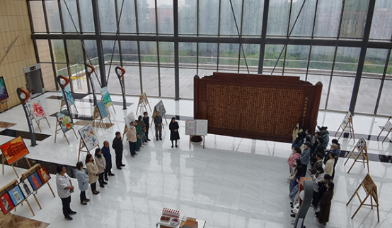 5月19日,“出阁”——美术学院18级油画二工作室教学汇报展在图书馆开幕。图书馆、美术学院领导班子成员、相关老师以及18级油画二工作室的学生出席开幕式。