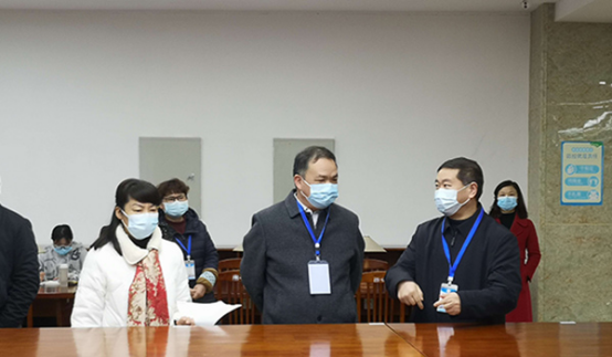 2022年2月28日,校长刘肇军在党政办、教务处、宣传部等相关人员的陪同下,到图书馆检查开学工作。图书馆总支书记罗良金、馆长蓝卡佳汇报了图书馆的开馆准备和疫情防控工作情况。