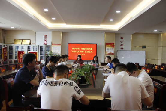6月29日,图书馆党总支书记罗良金、馆长蓝卡佳、副馆长尹兰等班子成员带领各科室主任到数学学院进行走访交流,并出席了与数学学院共建“红色文化长廊”启动仪式。