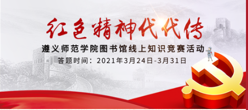 为喜迎建党100周年,深入学习贯彻习近平新时代中国特色社会主义思想和党的十九大和十九届二中、三中、四中、五中全会精神,认真落实习近平总书记关于建设书香社会的重要指示精神,特开展“红色精神代代传”线上知识竞赛活动。