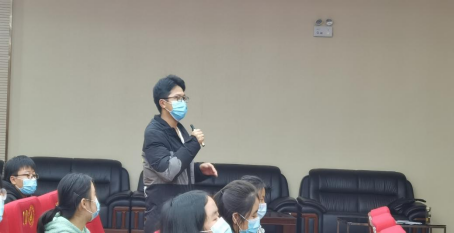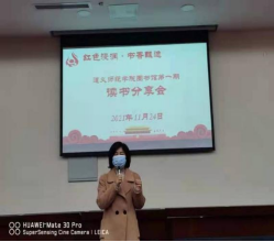 在读书分享会现场,外国语学院穆秀梅 、人文与传媒学院唐丽芝等6名同学就自己所读的红色书籍《红岩》《毛泽东诗词》《青春之歌》《把一切献给党》《红色家书》进行了介绍与分享,他们制作的ppt和绘声绘色的分享都给现场观众留下了深刻印象。