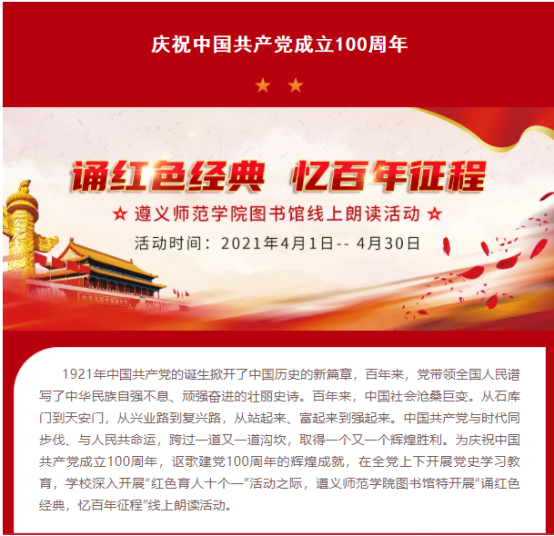 庆祝中国共产党成立100周年 | “诵红色经典 忆百年征程”线上朗读活动邀您来参加!