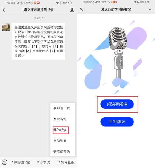 1.在朗读亭录音完成后,在图书馆微信公众号报名,使用朗读亭把自己的作品录音保存并上传;