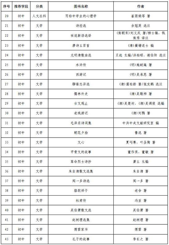 编者按:亲爱的同学,4月29日,图书馆为大家推送了教育部推荐的《大学生必读书目100本》。相信你已收获颇丰。但是,作为一个师范院校的毕业生,将来站在讲台,你还有一份光荣的责任,就是指导你的学生去阅读。为此,特向大家推荐教育部官网于2020年4月22日首次发布的《中小学生阅读指导目录(2020年版)》。