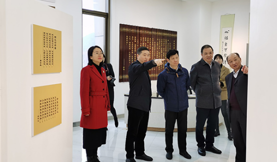 在图书馆二楼,赵凌云一行参观了中庭屏风、诗教成果陈列室和校史馆,了解了beat365诗教育人工作情况以及学校办学历史。