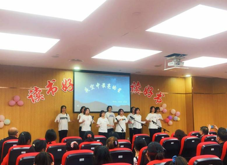 颁奖仪式后,志愿者带来了精彩的文艺表演及服务、阅读分享。有田凤、刘芯语等的小合唱《夜空中最亮的星》,张世佳、张米格等的诗歌朗诵《青春》,骆艳琦、郭薇薇等朗诵的《中国红》,陈丽君演奏的古筝曲《大鱼》,孙雨碟、钱意村等朗诵的《不朽》,周倩倩、洪雪芽等的小合唱《明天,你好》,席曼绮与彭亚莲的情景剧《跨越百年的青年对话》,活动在王琴的独唱歌曲《祖国正是花季》中圆满落幕。其间,志愿者获奖代表朱婷、唐嘉俊分享了志愿者服务的工作内容和心得,“阅读之星”代表刘洪潮分享他的阅读经历与感悟。