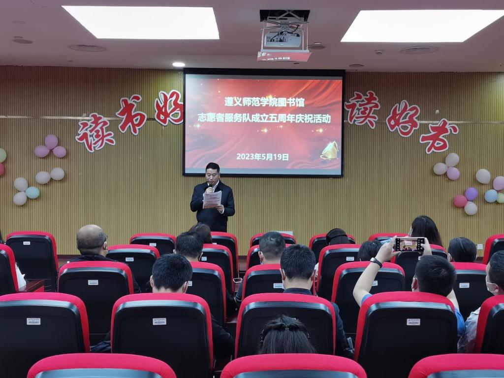 5月19日,图书馆在一楼学术报告厅举办了以“青春担当•志愿同行”为主题的志愿者服务队成立五周年庆祝活动,图书馆老师、志愿者服务队代表以及2023年“4•23世界读书日”活动获奖代表参加了本次庆祝活动。