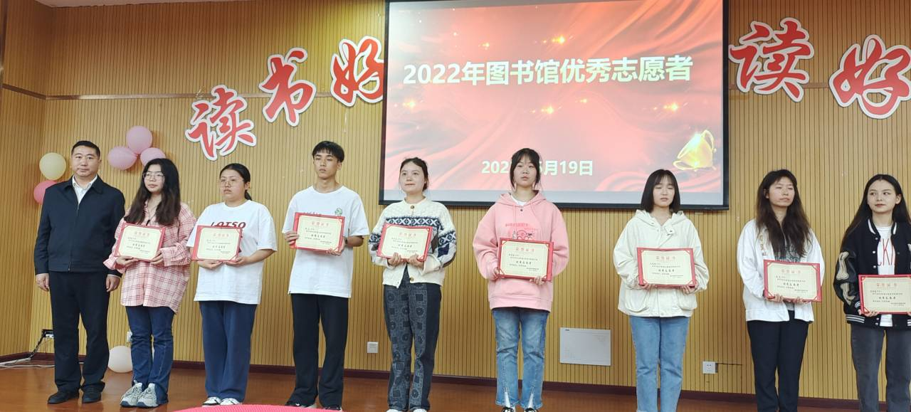 图书馆领导分别为在志愿服务工作中表现突出的2022年度图书馆“优秀志愿者”和在2023年“4•23世界读书日”系列活动中获奖的同学颁发了获奖证书。