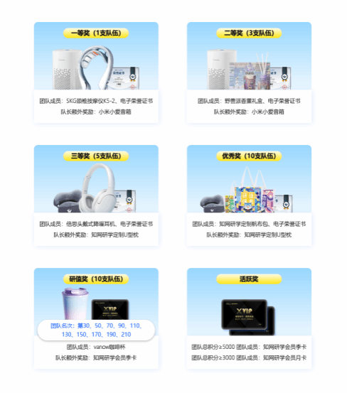 活动内容 :找搭子组建学习小组,一起在知网研学读文献、写论文、领资源包……即可获得学习积分。团队积分为组员积分加和,排名靠前的队伍将会获得精美礼品,队长可获得额外奖励!