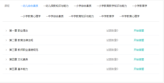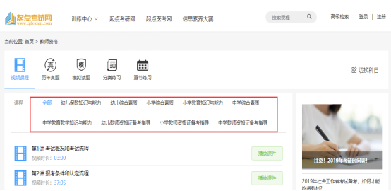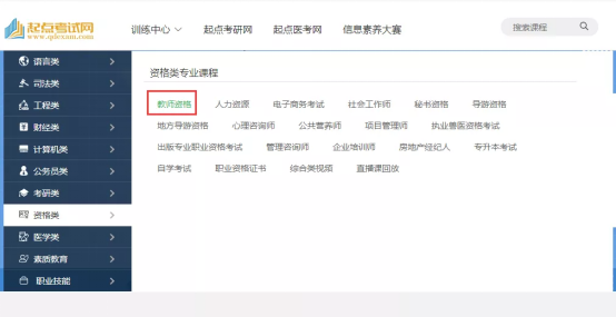 起点考试网中的教师资格考试资源包含中小学、幼儿园教师资格证考试的视频课程、考试试卷、分类练习和章节练习。