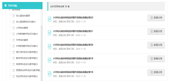 VIPExam考试库中的教师资格考试资源包含视频课程、真题试卷、模拟试卷。