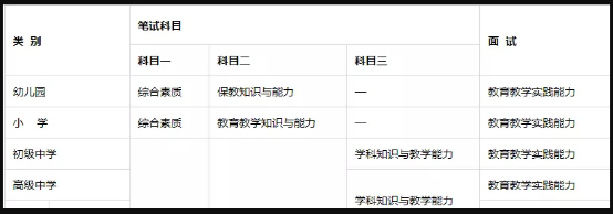 教师资格考试类别有中小学和幼儿园教师资格考试,包括幼儿园教师资格考试、小学教师资格考试、初级中学教师资格考试、高级中学教师资格考试。
