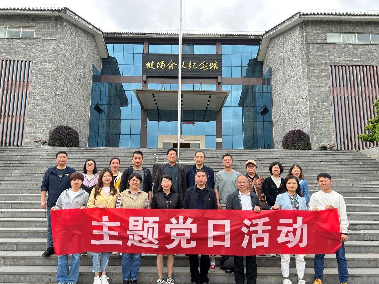 为深入学习贯彻习近平新时代中国特色社会主义思想和党的二十大精神,将党纪学习教育走深走实,丰富“主题党日”活动内容,弘扬革命传统,坚定理想信念,践行初心使命。5月10日,图书馆党总支、分工会组织图书馆、档案馆党员及教职工到猴场会议会址开展现场体验教学及主题党日活动。同时,为上半年入党同志过“政治生日”。
