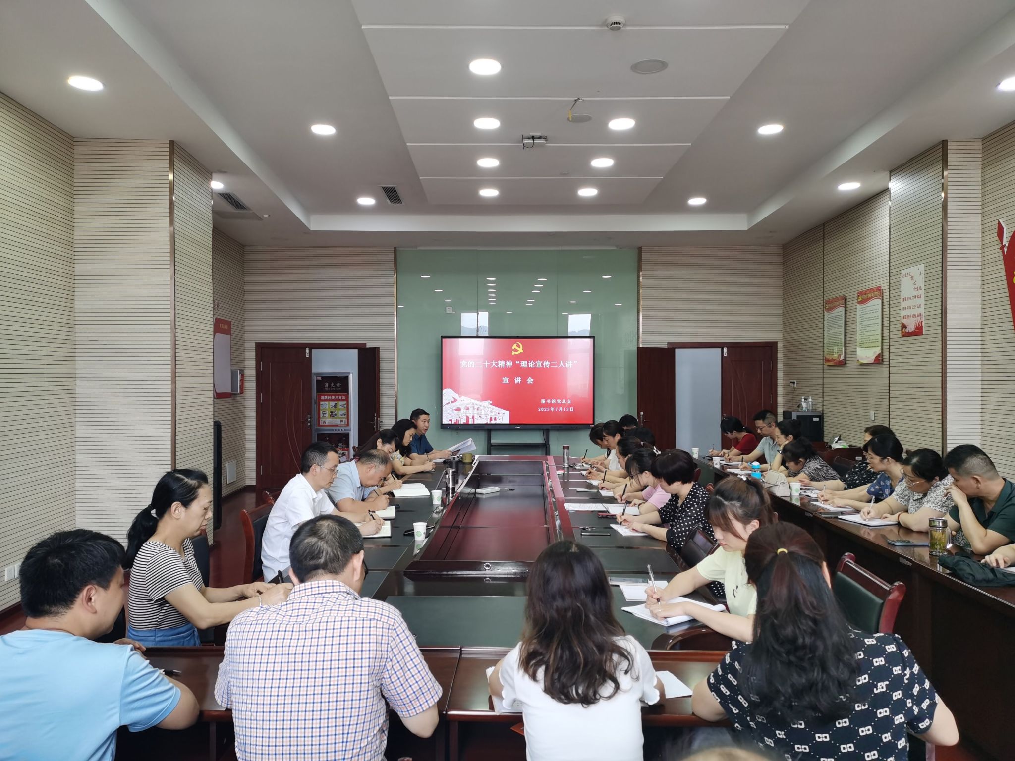 为进一步推动党的二十大精神走深走实,根据学校党委《关于开展党的二十大精神“理论宣传二人讲”宣讲工作的通知》要求,7月13日,图书馆党总支在314会议室开展了党的二十大精神“理论宣传二人讲”宣讲活动,图书馆和档案馆全体职工参加。党总支书记罗良金,教务处处长、教授吴波共同宣讲。