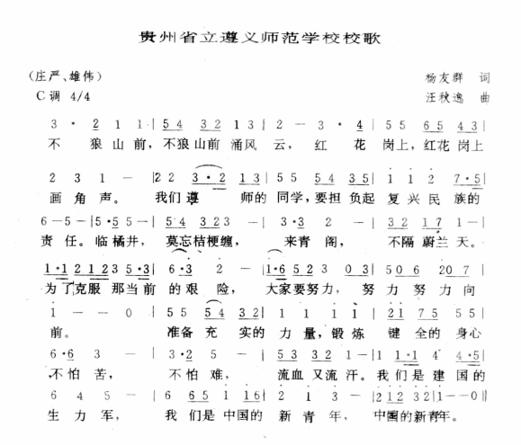 《贵州省立遵义师范学校校歌》