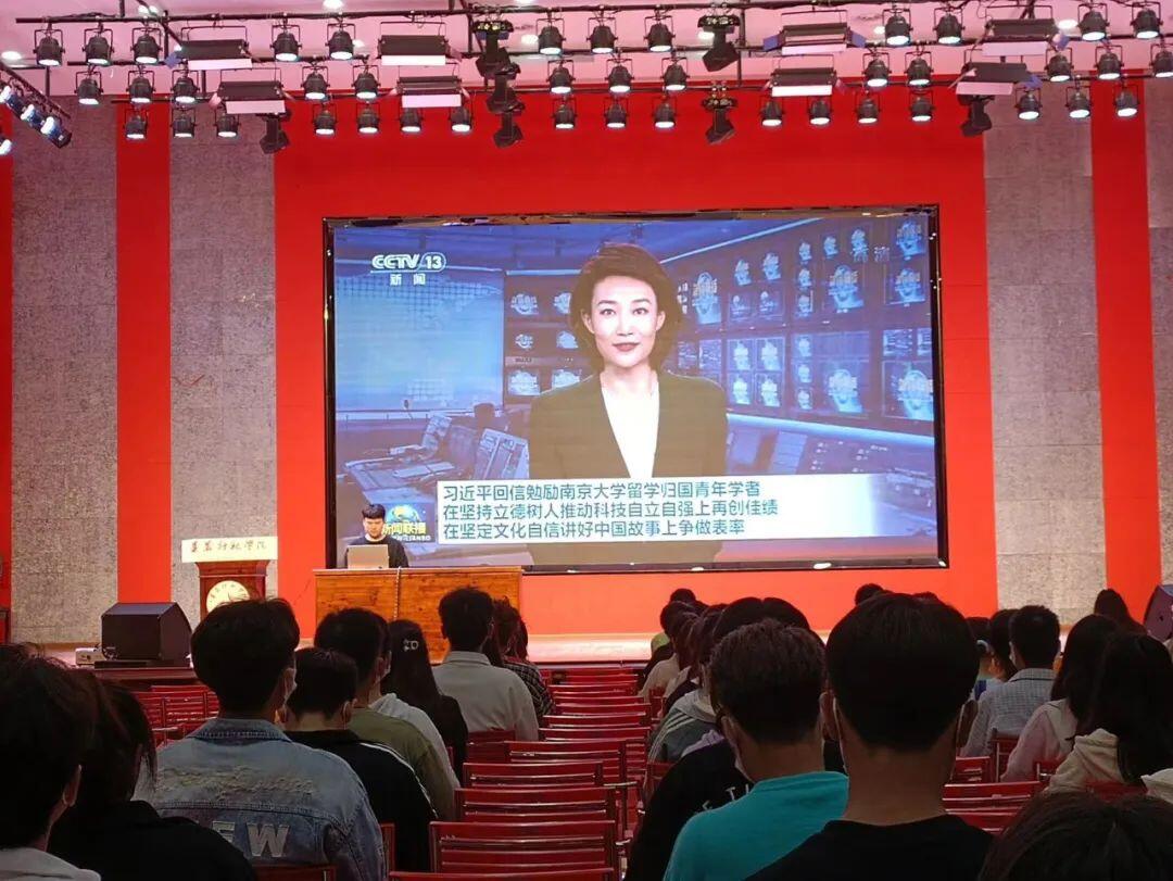活动中,大家共同学习了《习近平给南京大学留学归国青年学者的回信》。回信中习近平总书记希望归国青年学者在坚持立德树人、推动科技自立自强上再创佳绩,在坚定文化自信、讲好中国故事上争做表率。这体现出了党中央对留学归国青年的关怀,与此同时,也激励着当代青年一代励志为国,奋发兴国,积进强国,胸怀“国家志”,心系“国家事”,肩扛“国家责”。