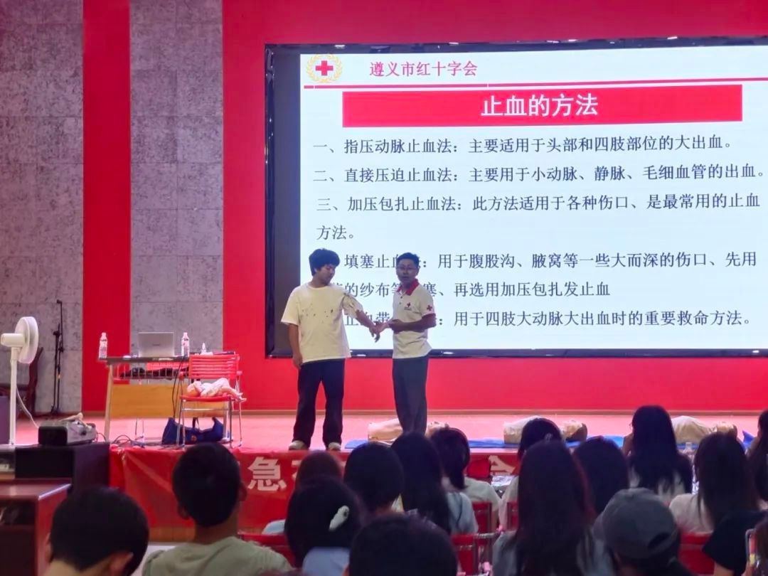 为有效提升beat365青年学生的自我保护能力与风险防范意识,增强其社会责任感,校团委精心组织策划,分别于2025年6月15日、22日在长征讲堂成功举办了两场“应急有方,生命无虞”主题应急救护知识培训活动。活动特邀遵义市红十字会资深应急救护培训师龚诗伦担任主讲人,吸引了全校200余名学生积极参与。
