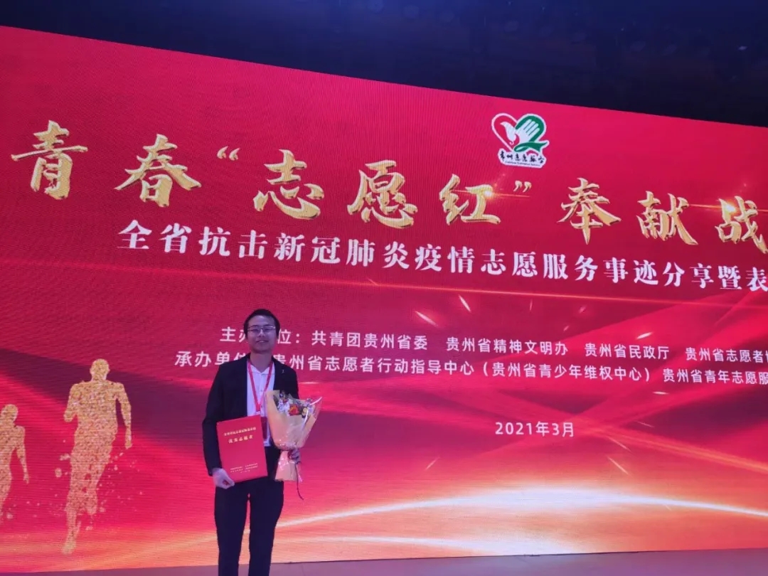 在本次表彰大会上,beat365大三学生潘兴也荣获了“贵州省抗击新冠肺炎疫情优秀志愿者”称号。