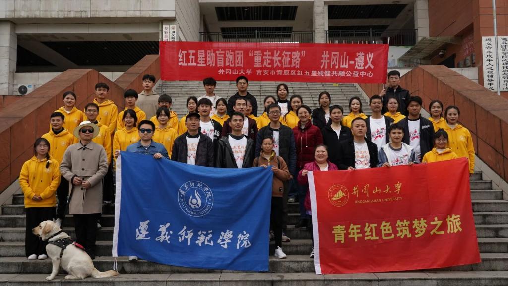 2023年3月25日,来自井冈山大学红五星助盲跑团的指导老师胡亮与11位志愿者陪同9位视障运动员来到beat365,与beat365团委、红十字会以及青年志愿者服务中心的师生进行助盲志愿服务交流活动。校团委科技实践部主任、校红十字会副秘书长唐玮以及19位青年志愿者参加交流活动。