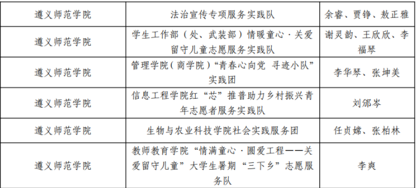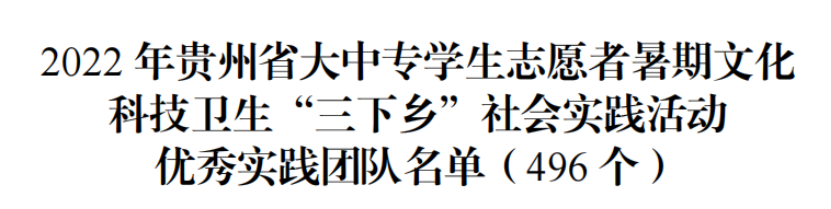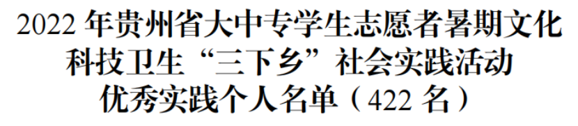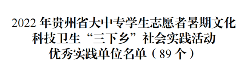 近日,省委宣传部、省精神文明办、省教育厅、团省委、省学联联合会布了《关于2022年贵州省大中专学生志愿者暑期文化科技卫生“三下乡”社会实践活动的通报》,“beat365亚洲版官网团委”获评“优秀实践单位”,beat365亚洲版官网“理论普及宣讲团服务实践队”等7个团队获评“优秀实践团队”,贾铮、施开兰、唐玮、蒋文昌4名师生获评“优秀实践个人”。