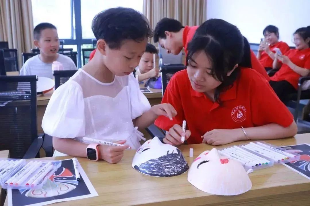活动现场,志愿者们按照课程表设计的教育类、艺术类和运动类三大情景式互动课程进行分工,带领孩子们学习趣味科学、制作脸谱与醒狮,让孩子们在快乐的氛围中学习科学知识和传统文化。