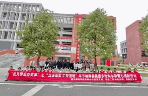 在寒冬来临之际,春晖社参加了由校团委组织的“点滴奉献,汇聚温暖”爱心捐赠活动,将遵师学子的爱和捐赠的物资,送到了毕节治沟小学,愿他们能感受到“遵师温度 ”,并鼓励他们熬住艰辛、守住初心、只争朝夕、不负韶华。