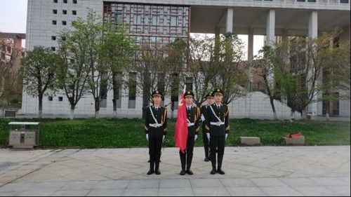 清晨,师生们早早列队,目光凝视着国旗护卫队整齐的步伐,从护旗到升旗。“起来,不愿做奴隶的人们……”国歌在广场中央响起,象征着中华人民共和国的国旗——五星红旗,在所有人的注目中缓缓升起,迎风飘扬。