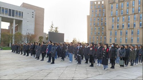 最后,全院师生合唱歌曲《我和我的祖国》。在嘹亮的歌声中,朝阳也冉冉升起,照耀神州大地。我们时刻与祖国相连,永远铭记着历史、牢记着党的嘱托、时刻肩负着初心和使命,也会将英烈先辈们的爱国精神传承下去。愿以吾辈之青春,守卫这盛世之中华!
