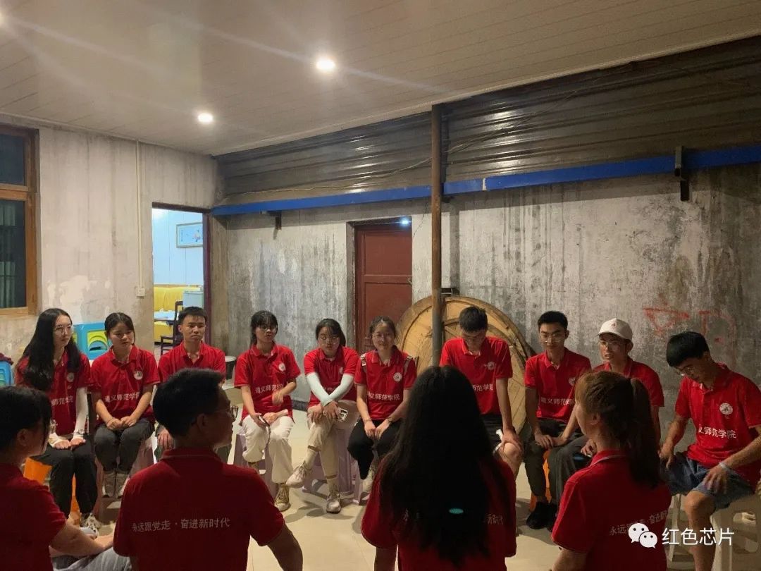 志愿服务队的队员们怀揣着青春的梦想踏上了征途,从7月9号下午16点乘坐大巴车出发,辗转车程经历了3个小时车程,抵达服务目的地:湄潭县洗马镇。舟车的劳顿和盛夏30℃的高温让队员们疲惫不堪,但是沿途美丽的新农村建设让队员们眼前一亮,脱贫攻坚彻底消除了绝对贫困,一代又一代的乡村建设者将过去落后、贫穷的农村改造成为生态宜居、富庶美丽的大美乡村。农家乐、玫瑰园、广场舞、村民健体公园让队员们不得不感慨旧貌换新颜,人民群众的幸福指数一天比一天高,村民们的脸上挂满了笑容,大家纷纷在车上发出阵阵的感叹。抵达目的地后,队长召开了一个分享会,大家都分享了自己的感受。