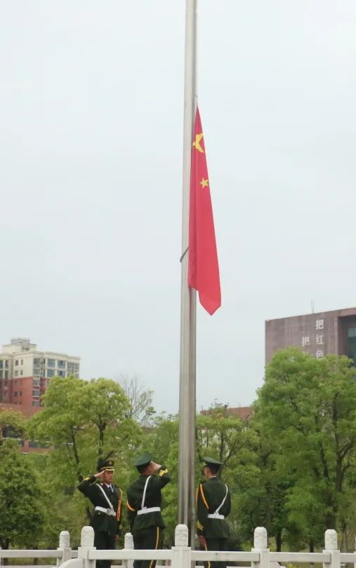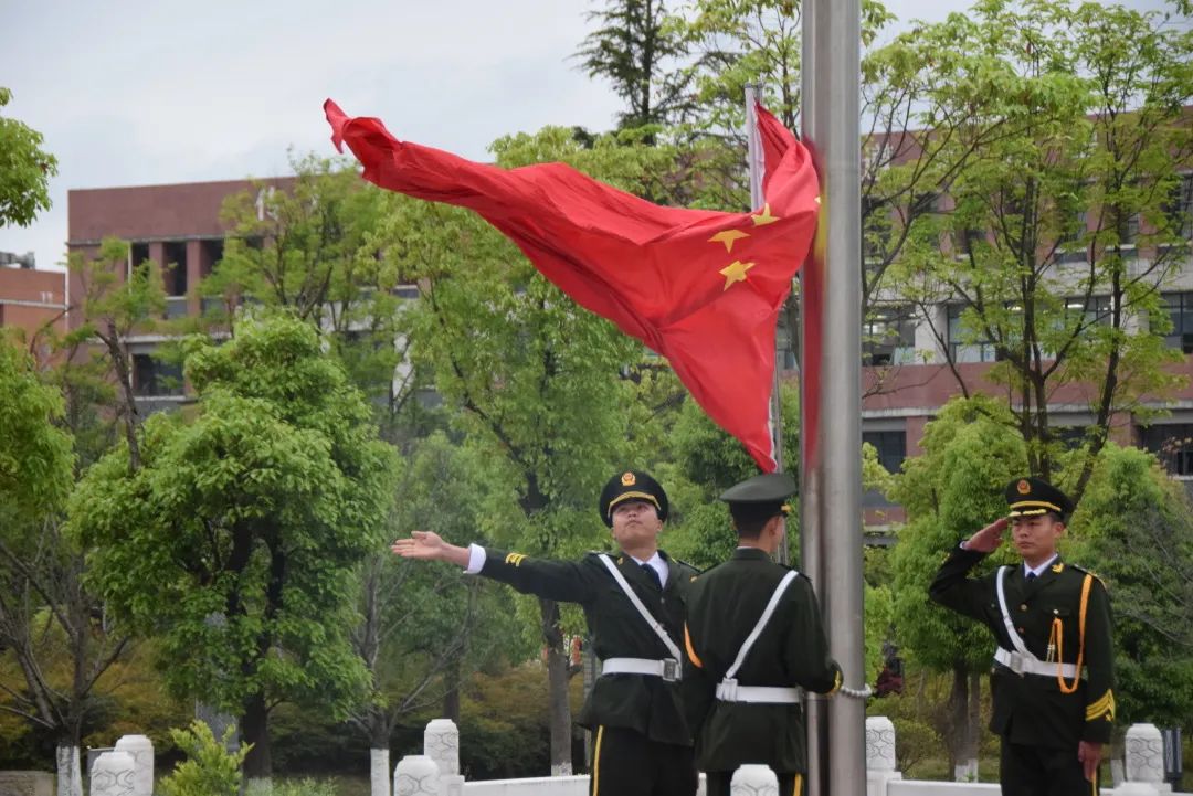 7点50分,意气风发的国旗护卫队着装一致,迈着铿锵有力的步伐,护送鲜艳的五星红旗走向国旗台。全体师生齐唱国歌,庄严肃穆。在国歌声中,鲜艳的五星红旗冉冉升起,象征着青年一代,坚定的理想信念,劈波斩浪,勇往直前。