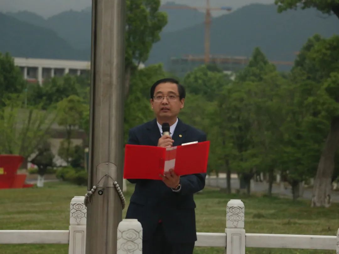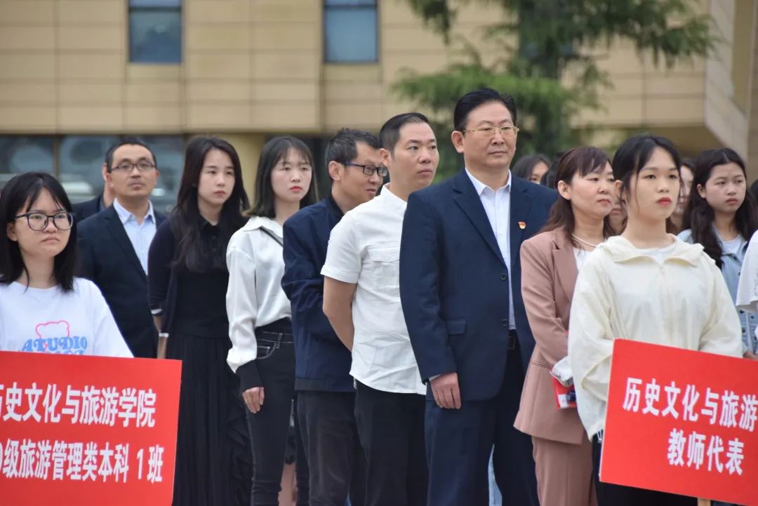历史文化与旅游学院党总支书记党会先发表“喜迎建团百年 共谱青春华章”为主题的国旗下讲话。党会先带领大家回顾了1919年的热血历史,并向全体同学提出三点期望:一要高举理想主义旗帜,争做不负韶华的有志青年;二要拼搏奋斗,争做不负青春的有为青年;三要苦练过硬本领,做不负时代的有识青年,以实际行动迎接党的二十大胜利召开。