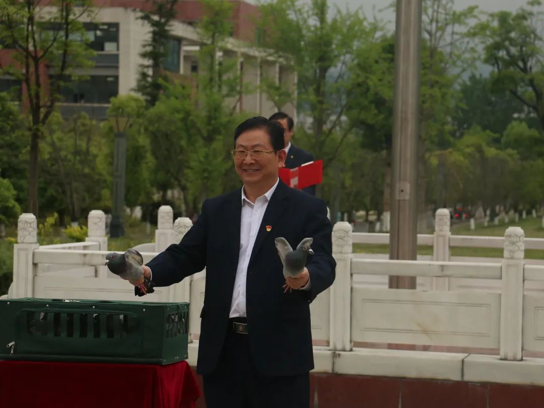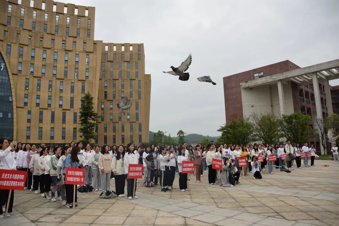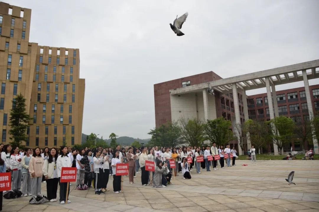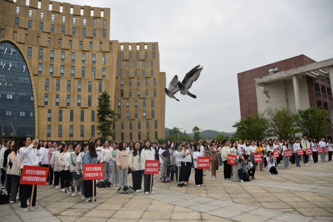 历史文化与旅游学院党总支副书记洪圣达放飞和平鸽。习近平总书记说:“青年是社会上最富有朝气、最富创造性、最富有生命力的群体,青年是祖国的未来,民族希望也是我们党的未来和希望。”在升旗仪式上放飞和平鸽,表达珍惜来之不易的和平时光,同时希望师生翱翔在更广阔的天空。