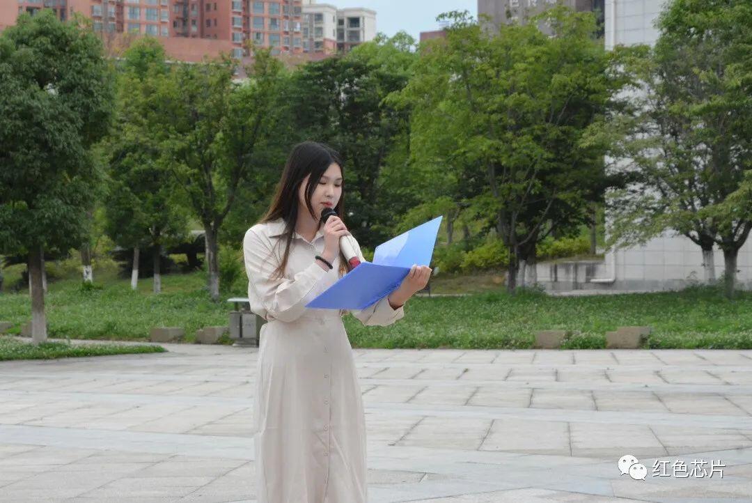 省级优秀大学生代表18级讯飞2班阮鸿进行国旗下讲话,“饮水思其源,成学念吾师。感谢学校海纳百川的氛围和多元化的平台,为大家提供了学习和成长的无限可能;感谢老师,传知识之道、授强国之业。祝愿母校学术百花齐放,教书育人桃李芬芳;祝愿老师工作顺利,身体健康;祝愿学弟学妹们在往后的生活、学习中不忘初心勇往直前;祝愿2018级全体毕业生前程似锦。”