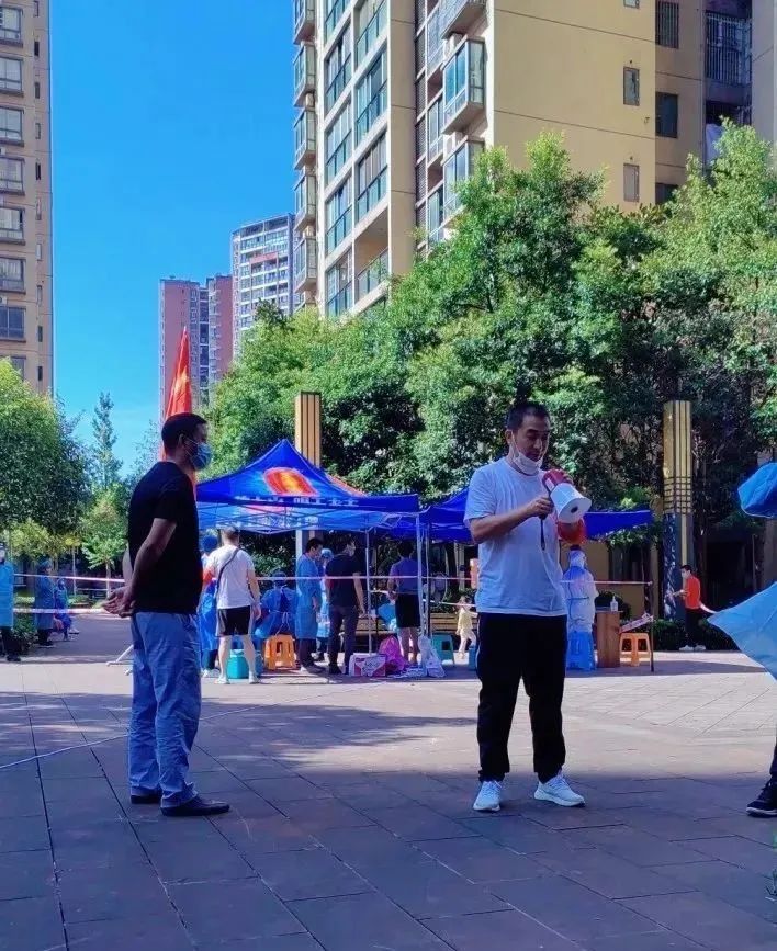 自2022年8月27日起,罗玉环配合社区医护人员开展“三天两检”工作,跟随政府工作人员进入社区参与疫情防控活动。