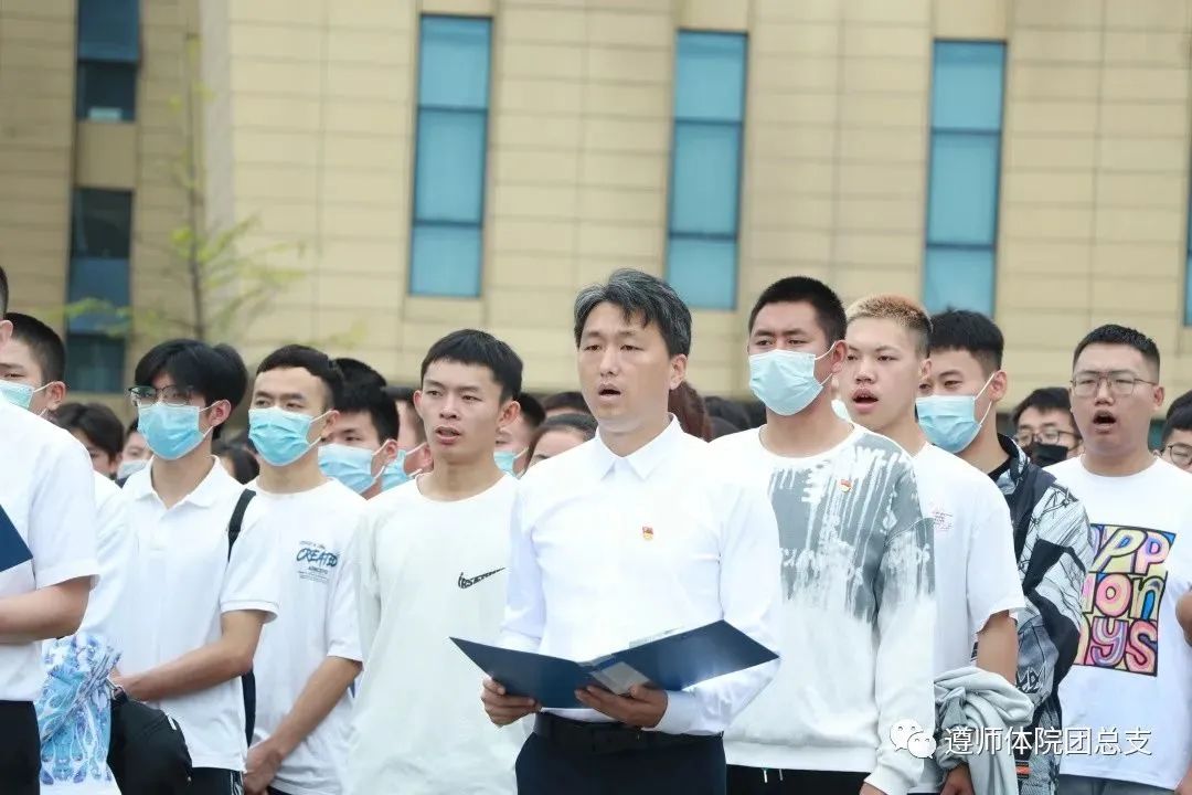 仪式上,体育学院党总支副书记王凯讲话。他鼓励同学们要大力弘扬爱国主义精神,激扬“爱国之情”、立牢“报国之志”,进而全面付诸报国强国之行,把爱国主义精神转化为建功立业新时代的实际行动,努力学习,志存高远。