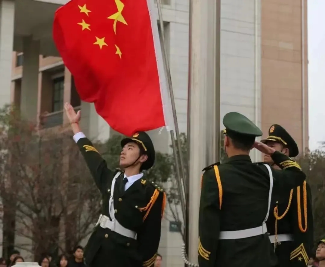 旗手们以饱满的热情,庄严地护卫着五星红旗。雄壮有力的《义勇军进行曲》响彻着整个校园,鲜艳的五星红旗冉冉升起,全体人员行注目礼、唱国歌,弥漫着庄严肃穆的气息。升旗完毕后,2021级音乐学专业靳素兰同学为现场师生深情讲述遵义红色故事。