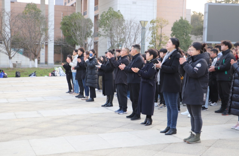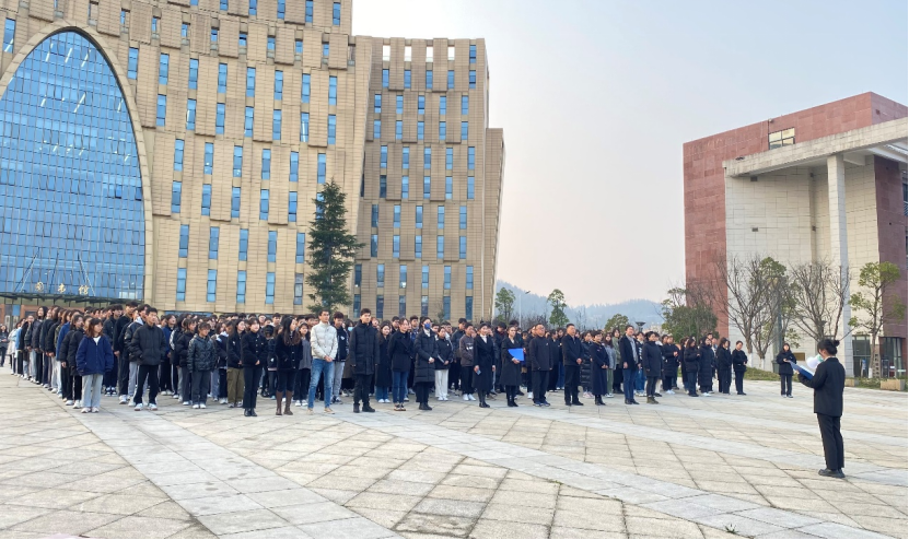 管理学院(商学院)党总支书记华定强,院长张新,党总支副书记张龄予,副院长刘映霞、吕薇,全体行政人员、班主任及2020级、2021级、2022级全体学生参加本次升旗仪式,仪式由张嫦主持。