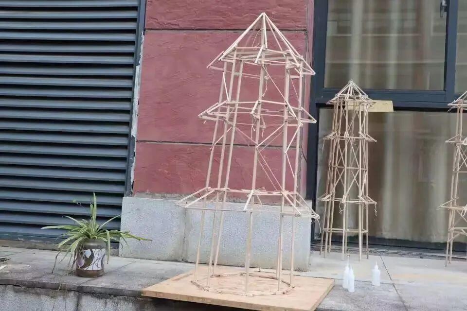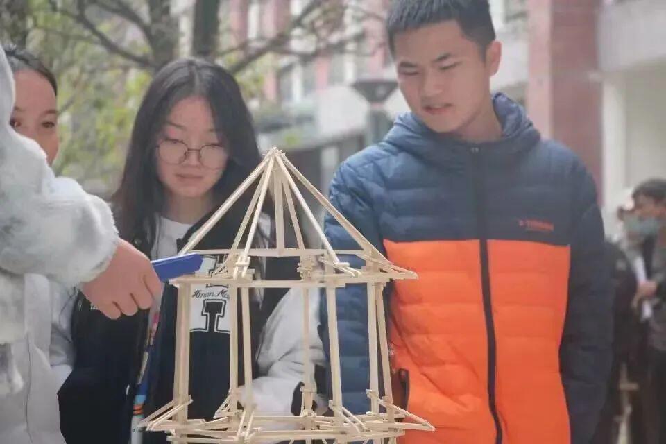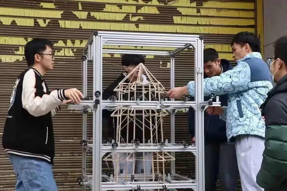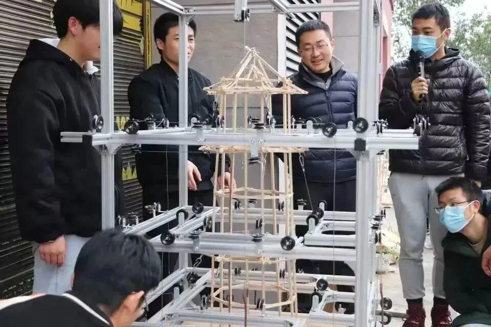 此次大赛以“三重鼓楼结构模型设计与制作”为题。通过检测、称重、测量、加载点抽取的流程,比赛作品逐一展示。加载人员在固定点位进行竖直、扭转、水平荷载共三级荷载的加重,对于结构自身的重量和强度发出了更高的挑战,经过公正评判,最终评选出获奖作品。